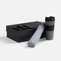Материал: термостакан - нержавеющая сталь, пластик; зонт - эпонж, металл, пластик; сумка - хлопок 100%