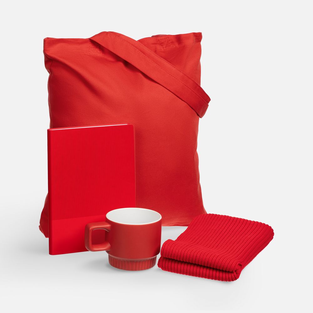 Материал: сумка - хлопок 100%; шарф - акрил 100%; ежедневник - искусственная кожа; кружка - каменная керамика