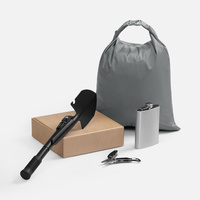 Материал: лопата - сталь, пластик; резина; чехол - полиэстер; мультитул - нержавеющая сталь, алюминий; мешок - нейлон, рипстоп; полиуретан; фляжка - нержавеющая сталь, AISI 304; коробка - микрогофрокартон; наполнитель - бумага