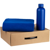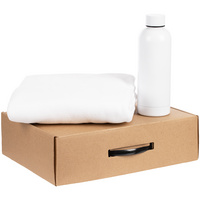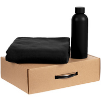 Материал: бутылка для воды - металл; пластик; плед - флис; коробка - микрогофрокартон; пластик