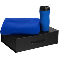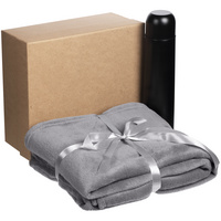 Материал: покрытие софт-тач; термостакан - пластик, крышка, внутренняя колба; нержавеющая сталь, корпус; плед - флис, плотность 180 г/м²; коробка - переплетный картон; наполнитель - бумага