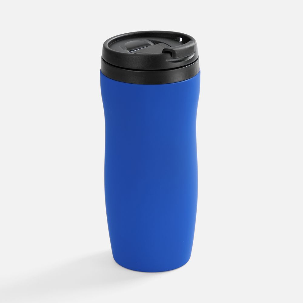 Двухслойная конструкция из нержавеющей стали снаружи и пищевого пластика внутри. Герметичная завинчивающаяся крышка с откидным клапаном для питья. Покрытие софт-тач. В отверстие в крышке можно вставить шнурок для удобного ношения стакана на руке. Шнурок в комплект не входит.