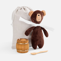 Материал: игрушка - велюр, полиэстер; бочонок - липа; мешок - лен