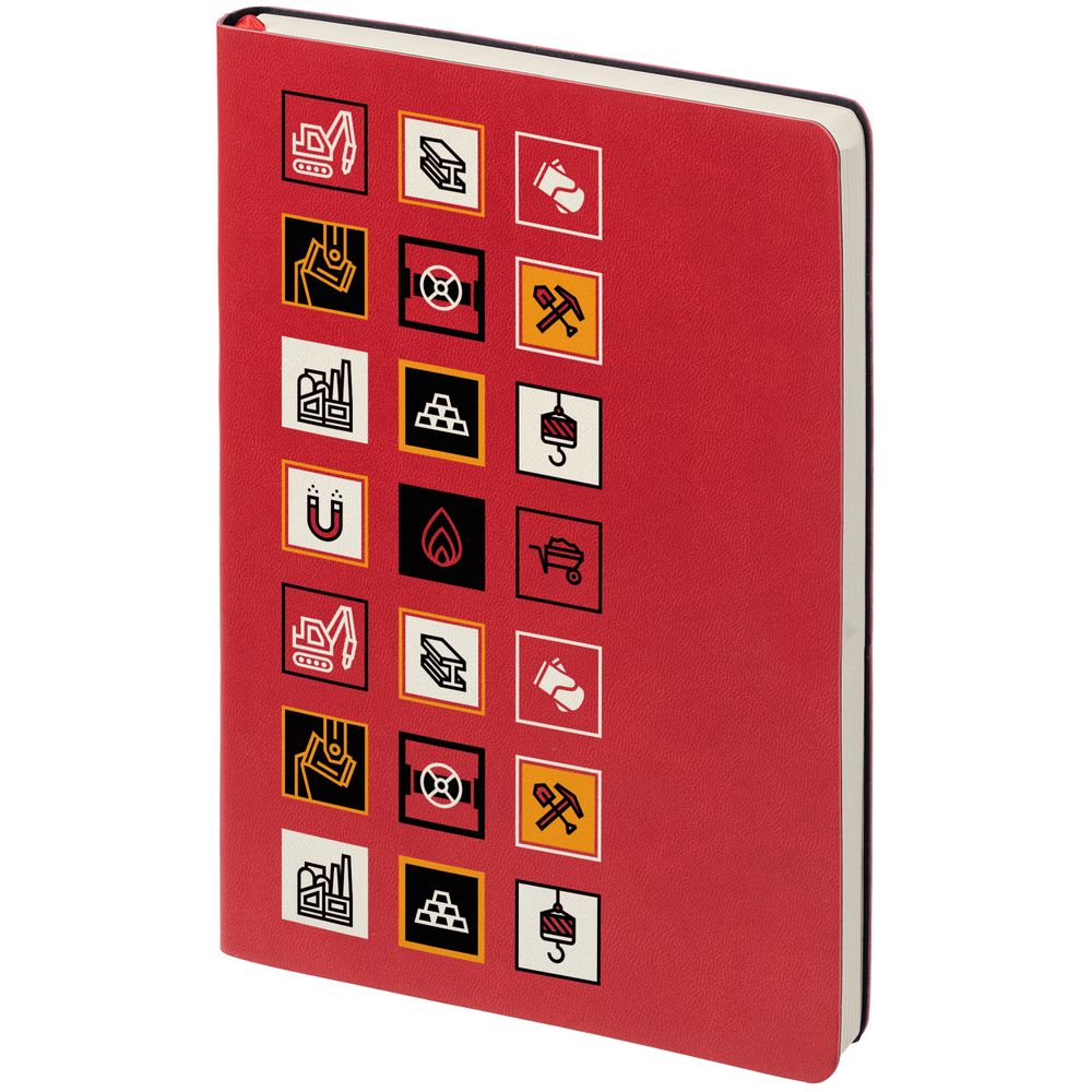 Ежедневник с гибкой обложкой, выполнен из материала Latte, красный, дополнен ляссе в цвет обложки.